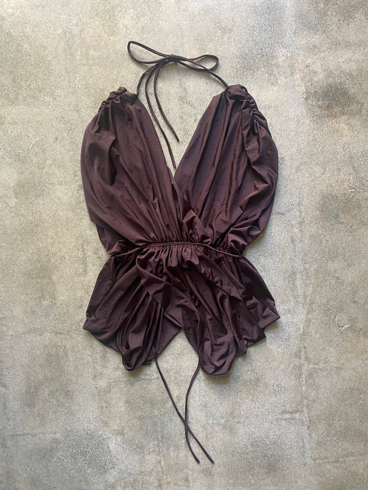 00's Chocolate Brown Abstract Top