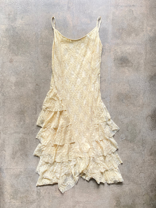 Sold out00'S Cream Lace Ruffle Midi Dress