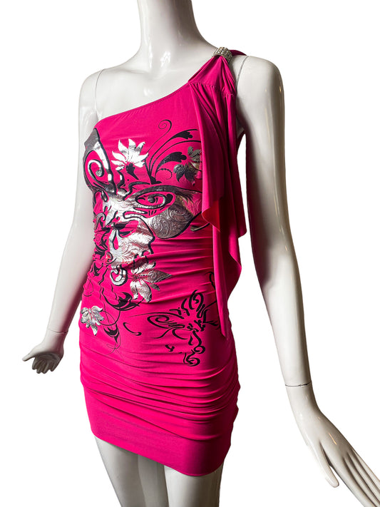DEADSTOCK Y2K HOT PINK BUTTERFLY MINI DRESS