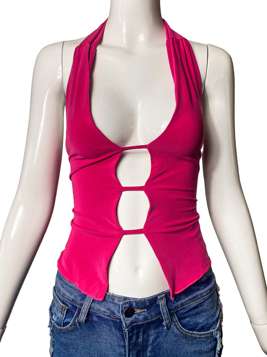 Sold outDEADSTOCK Y2K HOT PINK HALTER TOP