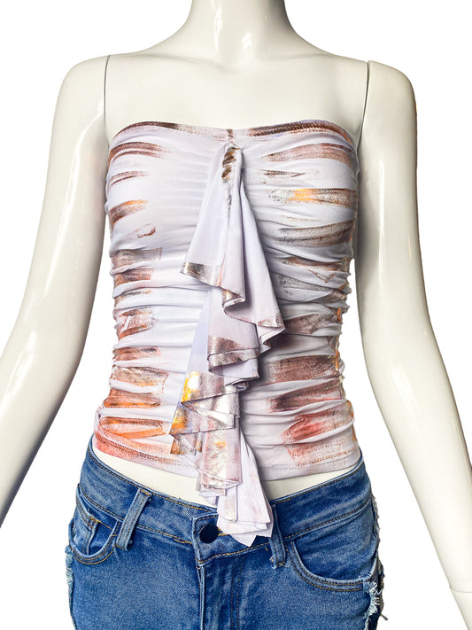 DEADSTOCK Y2K METALLIC RUFFLE TUBE TOP