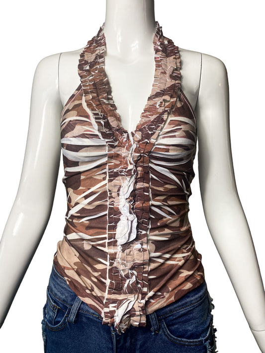 Sold outDEADSTOCK Y2K ARMY RUFFLE HALTER TOP