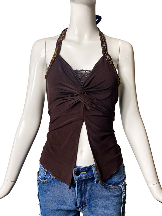 DEADSTOCK Y2K CHOCOLATE FAIRY HALTER TOP
