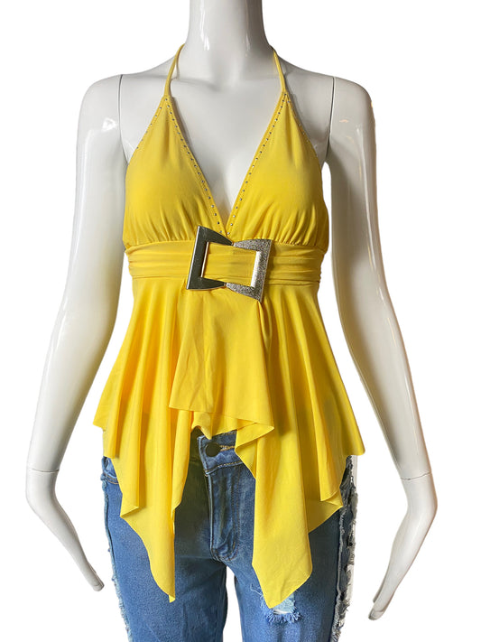 DEADSTOCK Y2K YELLOW ASYMMETRIC HALTER TOP