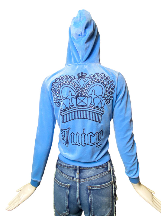 VINTAGE 00'S JUICY COUTURE BABY BLUE VELOUR HOODIE