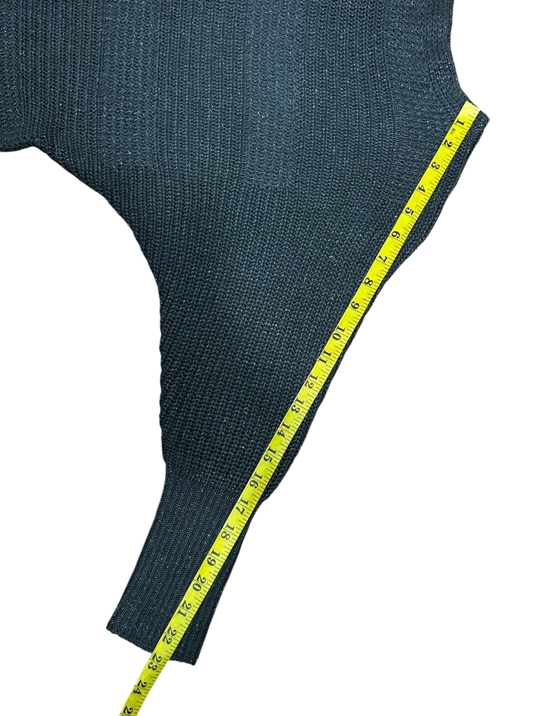 Gray knit Mini Dress, metallic sheen built in faux belt.