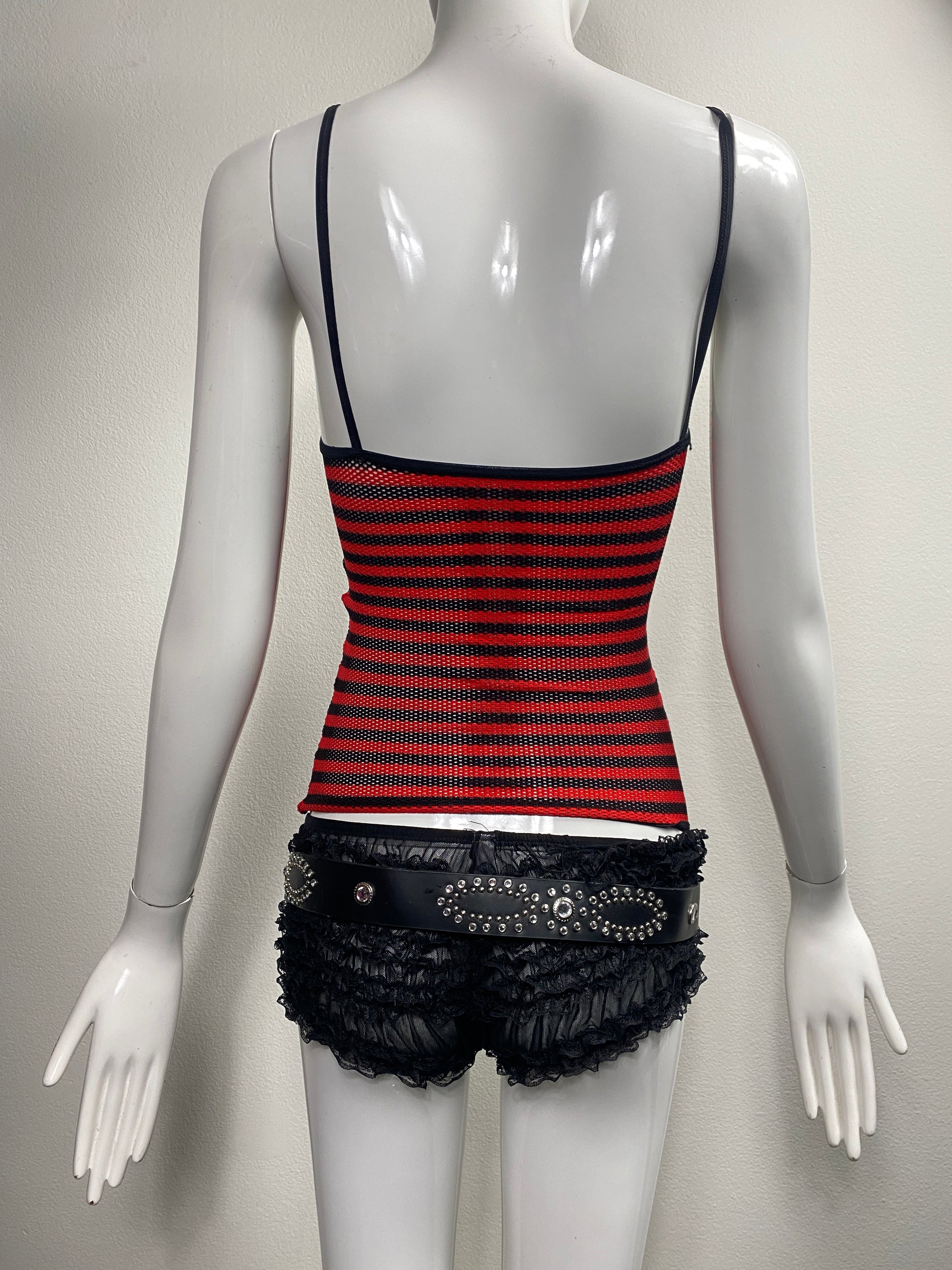 Leg Ave Red Stripe Mesh Cami, in good condition. Tagged as one size and has lots of stretch.